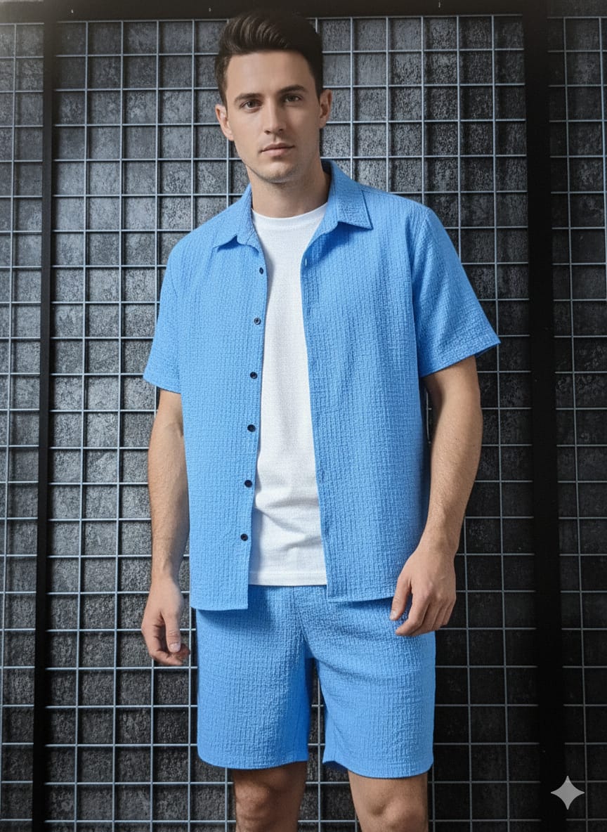 The Sky Blue Summer Co-Ord Set brings a fresh, breezy vibe perfect for warm days. Its pastel blue shade and relaxed fit make it a stylish option for beach trips, brunches or vacation outings.